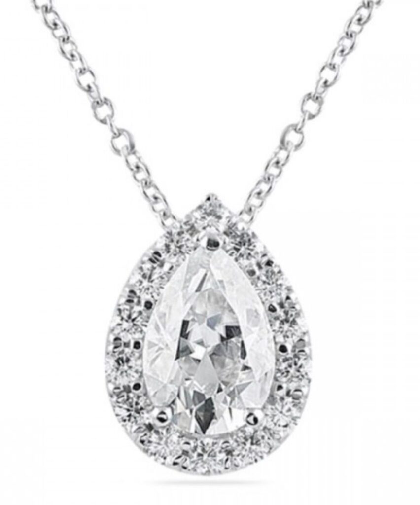 Élégant et intensément lumineux, ELYSIA HALO PENDANT sublime un diamant taille poire d’une grande pureté, délicatement entouré d’un halo de diamants qui amplifie son éclat et souligne la finesse de sa silhouette. L’équilibre parfait entre la pierre centrale et son entourage crée une lumière continue, raffinée et maîtrisée.
