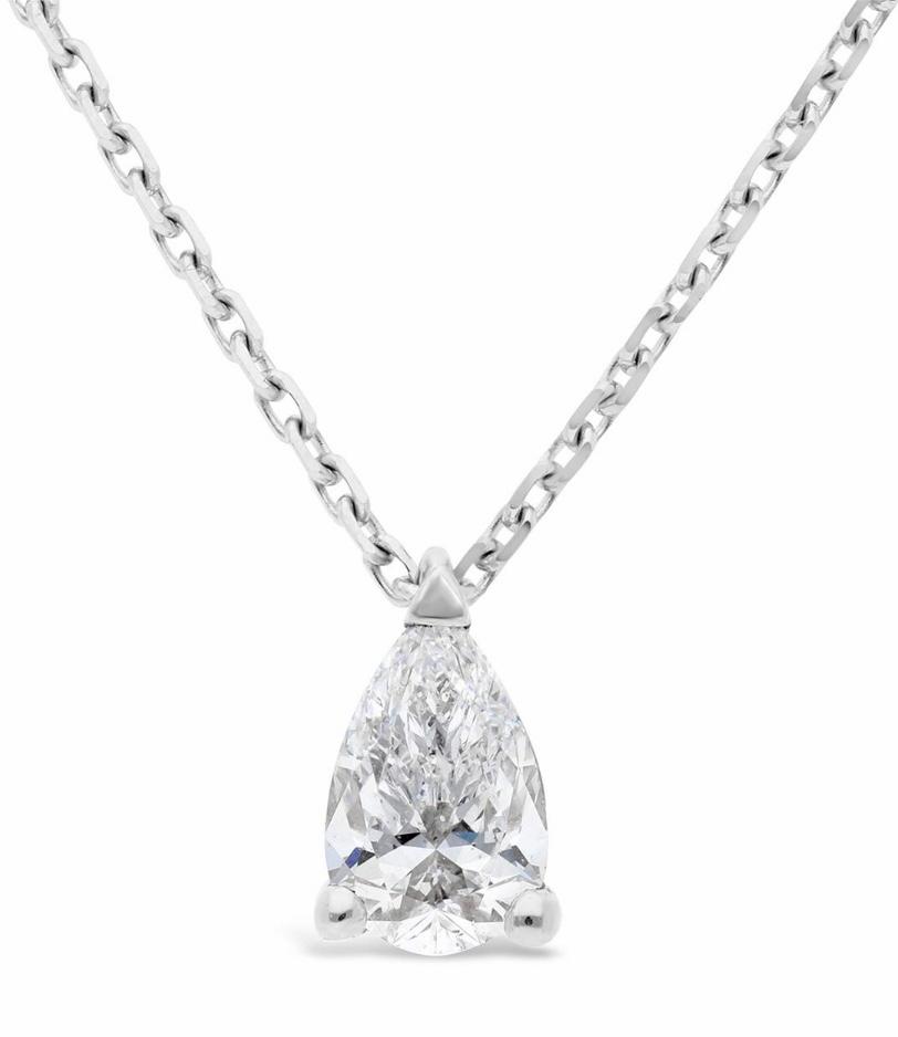 La silhouette élancée du diamant apporte une touche de féminité raffinée, tandis que la chaîne fine assure un porté léger et parfaitement équilibré. Ce pendentif incarne le luxe discret et la simplicité maîtrisée, signature des essentiels joailliers.