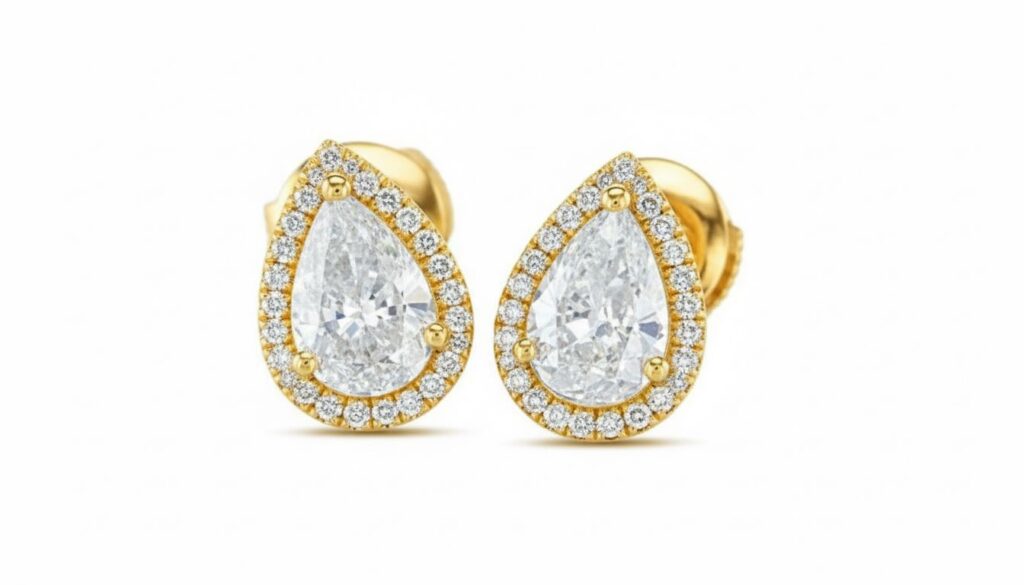 Délicates et lumineuses, ELYSIA STUDS mettent en valeur deux diamants taille poire d’un éclat remarquable, chacun délicatement entouré d’un halo de diamants qui intensifie la brillance et souligne la finesse de leur silhouette élancée.