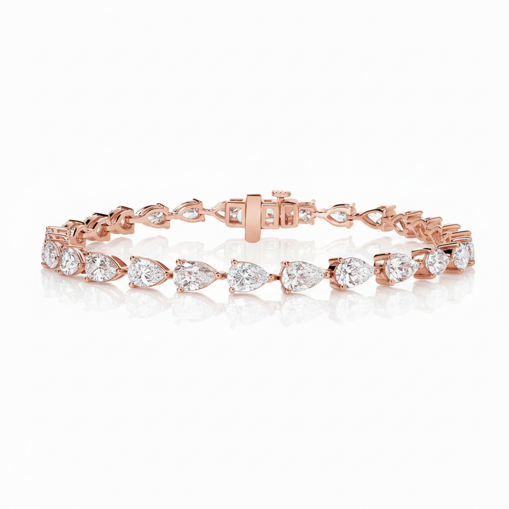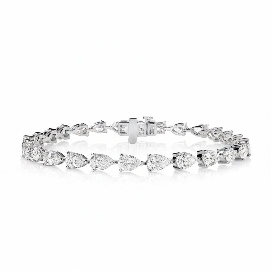 Élégant et intensément lumineux, ELYSIA TENNIS se distingue par une succession de diamants taille poire délicatement sertis, créant un rythme fluide et harmonieux autour du poignet. L’alternance des silhouettes élancées confère au bracelet une allure raffinée et résolument féminine.