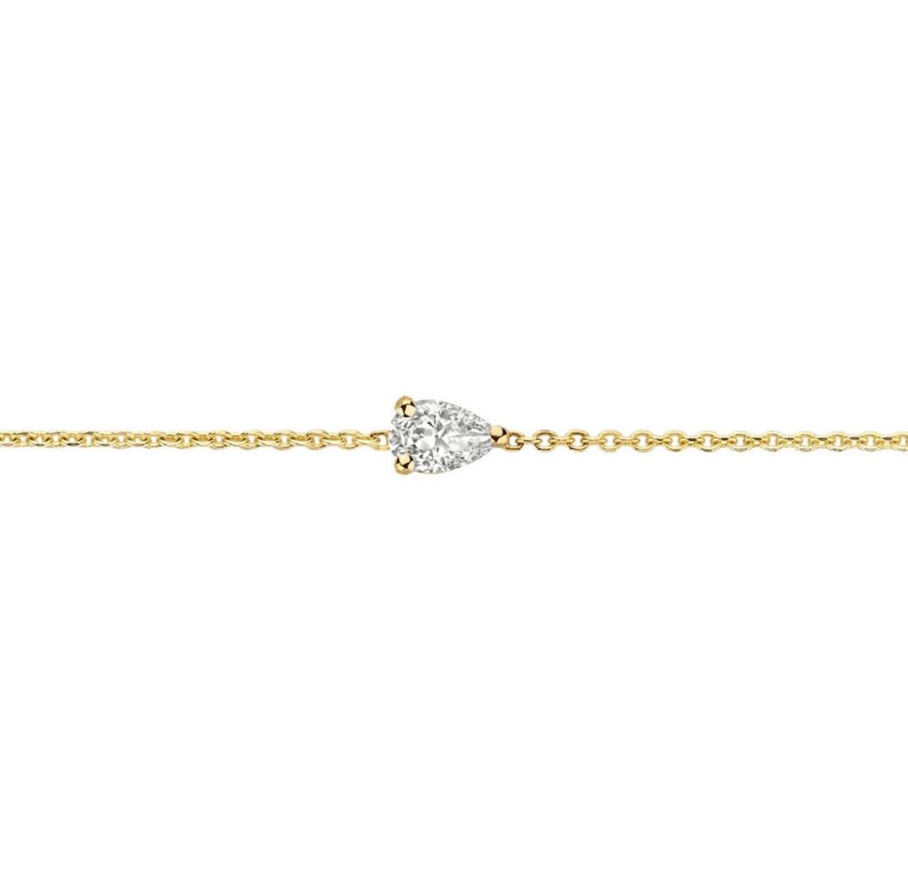 D’une pureté éclatante, ce bracelet en or révèle un diamant taille poire d’une brillance saisissante. Porté comme une seconde peau, il habille le poignet d’un éclat subtil et d’une élégance absolue.
