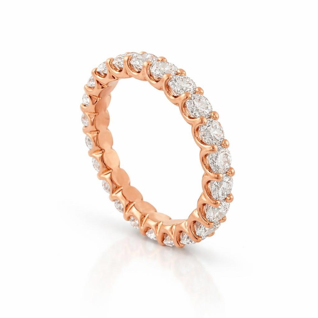 Le sertissage délicat assure une tenue optimale des diamants tout en préservant la finesse visuelle et le confort au porté. Cette alliance incarne une interprétation raffinée du bijou d’éternité, où équilibre, précision et élégance se conjuguent dans une esthétique intemporelle.